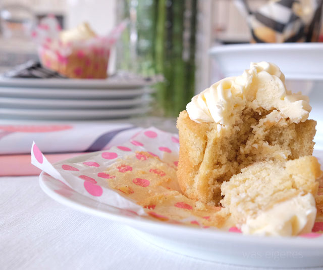 […] Wir liiiieben Cupcakes! Bine von was eigenes hat ihre mit einem Buttercreme-Frosting dekoriert. Im Frosting und in den Cupcakes hat´s Eierlikör. Miaaaam. Ganz toll gefallen uns übrigens auch die selbergemachten Cupcake-Förmchen. Rezept und Anleitung gibt es hier. […]