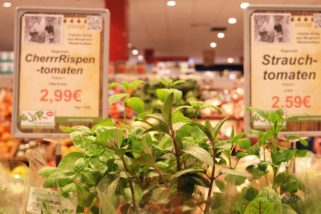 Der ortsansässige Rewe hat seinen Anteil daran, denn er vergrössert gefühlt ständig sein Angebot an regionalen Lebensmitteln, auch sind da mittlerweile viele Bioprodukte dabei, was mich sehr freut!