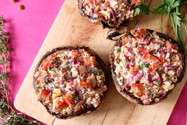 Alles weitere bereitete ich am Sonntagvormittag vor. Zunächst die gefüllten Portobellopilze. Auch hier waren alle Zutaten recht schnell geschnippelt und zusammen gemixt und die Pilze gefüllt. Ich esse unglaublich gerne Pilze und freute mich schon auf den Verzehr beim Auspacken der Box.