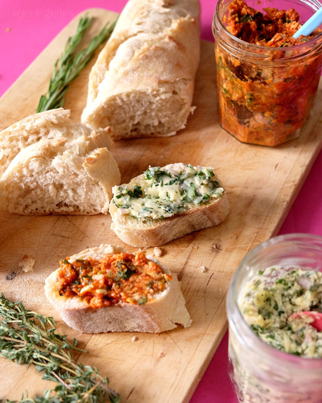 Wie angekündigt wurde die Grillbox am Freitagvormittag, gut gekühlt mit lauter frischen Bio-Lebensmitteln geliefert. Ich packte alles in den Kühlschrank um und Samstagnachmittag fing ich mit den ersten Vorbereitungen an. Im beiliegenden Rezeptheftchen steht geschrieben, welche Speisen man ohne Bedenken schon am Vortag vorbereiten kann. Die zwei Kräuterbutter (Tomate-Knoblauch-Basilikum-Limette sowie Fünf-Kräuter-und-Knoblauch) waren schnell zusammen gerührt und schmeckten schon beim Probieren super salzig und würzig. Hineinkommt u.a. Maldonsalz, was ich vorher gar nicht kannte. Sehr lecker. Danach rührte ich die Fleischmarinaden an und legte das Fleisch mit Marinade über Nacht in den Kühlschrank. Dafür sollte man Zippbeutel im Haus haben. Die Info, welche Basiszutaten und welches Küchenzubehör man benötigt, wird Dir übrigens zwei Tage vor Lieferung via Email mitgeteilt.