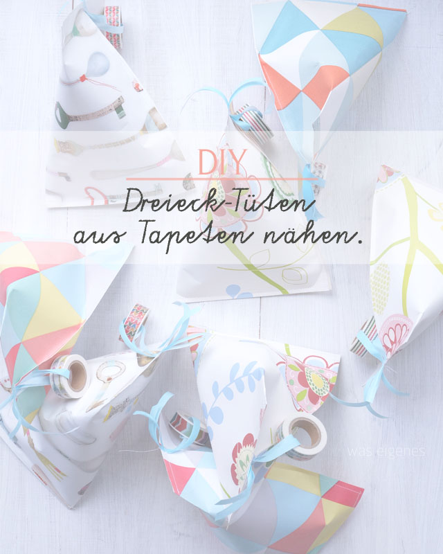 In diesem Jahr habe ich es nicht vergessen und so besorgte ich Ende Mai Labellos, Badesalz, Washi Tape und sowas. Die Damen und Herren sind mittlerweile zu alt für Pixi Bücher. Hinein kamen die kleinen Aufmerksamkeiten in gebastelte, bzw. genähte Dreieck-Tüten. Dafür habe ich Musterstücke von Tapeten genutzt.