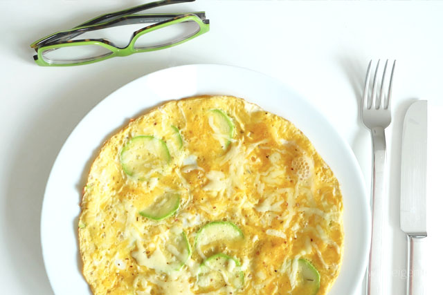 Der kleine Mann ist wieder zu Hause. Alle haben Hunger, aber keiner mag, was der andere will. Deswegen koche ich drei Gerichte (ausnahmsweise!). Für mich gibt’s heut Zucchini-Omelette passend zur Brille.