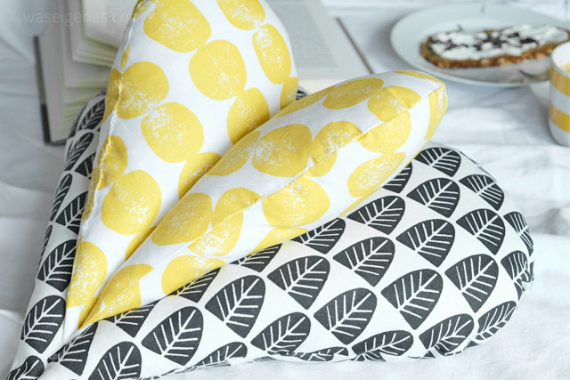 Eigentlich wollte ich mir schon längst einen Leseknochen genäht haben. Aber dann hatte ich eine andere Idee. Wie wäre es denn mit einem Herzkissen? Eine Art Doppelherz? Ich tüftelte ein bisschen rum und am Ende hatte ich ein Leseherz Kissen!