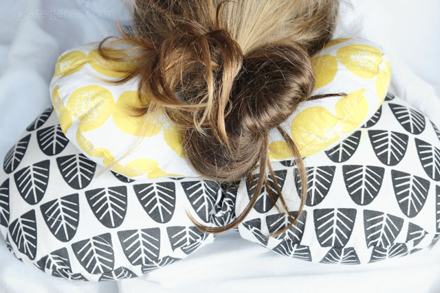Es passt sich wunderbar der Kopfform an und ist die perfekte Kopfstütze beim Lesen in der Horizontalen. Mein kleines Model durfte es nur für`s Foto probeliegen- das ist meins! Sie und der kleine Mann haben ihre eigenen Leseknochen. ;-)