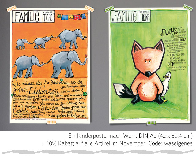 Familie kleiner Tiere: Eine niedliche Tierfamilie präsentiert Poster mit klassischen Kinderliedern und Schlafliedern. Die Kinderzimmer Poster bieten eine tolle Unterstützung beim Singen für Dein Baby oder beim gemeinsamen Singen mit älteren Kindern. Weitere Kinderposter mit Reimen, Zahlen und Alphabet oder individuelle Familienportraits gibt es zusätzlich. Ein schönes und sinnvolles Geschenk für Eltern und Kinder.