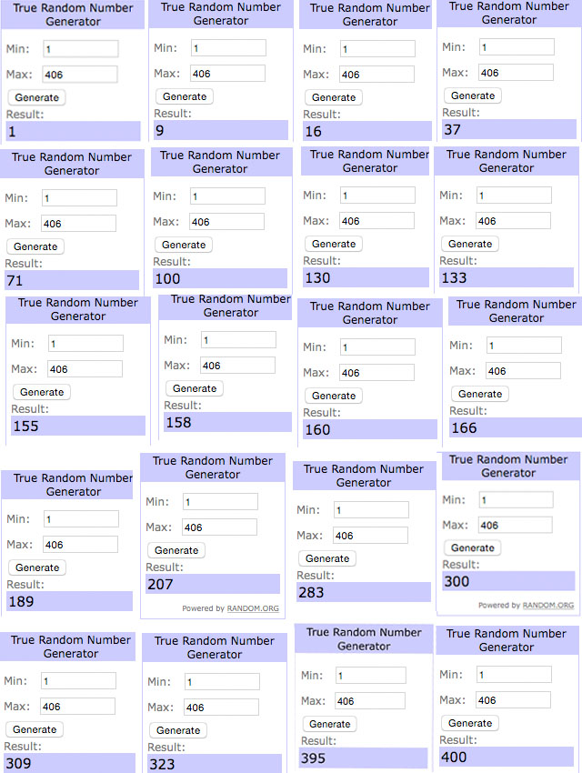 Herzlichen Glückwunsch: Tanja, Carlinda, Claudia, Rebekka, Ulla, Nadine, Julia, Nicole, Andrea, Claudia, Nathalie, Veronika, Katrin, Vanni, Claudia, Maren, Kerstin, Sindy, Andrea und Steffi! Edit: da eine Gewinnerin zurück getreten ist, wurde nun die Nr. 74 (Eva) ausgelost.