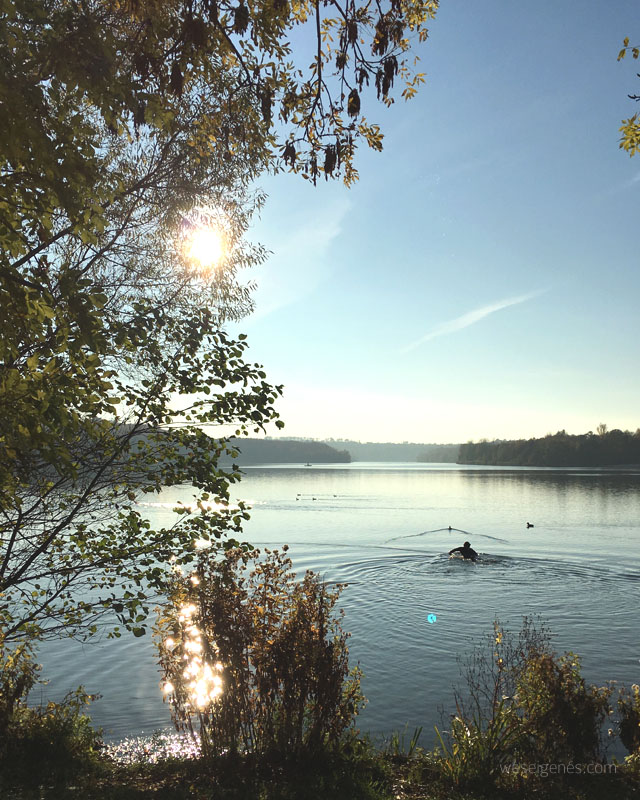 Jedes Jahr überrascht er mich aufs Neue und jedes Jahr mag ich ihn noch ein bisschen mehr, den Herbst. Ich würde behaupten, er ist meine liebste Jahreszeit. In den letzten Wochen zeigte er sich von seiner allerbesten Seite: Sonnenschein, tief und warm. Tausende und abertausende bunte Blätter. Erst an den Ästen, dann am Boden. Blauer Himmel, Zugvögel, Kondensstreifen, glitzernde und tanzende Lichter auf dem See.