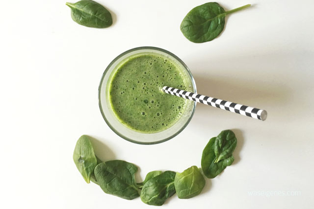 Zum Frühstück gibt es einen Spinat Smoothie. Ich bin höchst überrascht und erfreut, wie erfrischend lecker so ein grünes Getränk schmecken kann. In meinem Vorsätze-Posting hatte ich ja schon kurz angerissen, dass ich 14 Tage lang ein Ernährungsprogramm teste- oder besser: mitmache. Demnächst werde ich ausführlich berichten.
