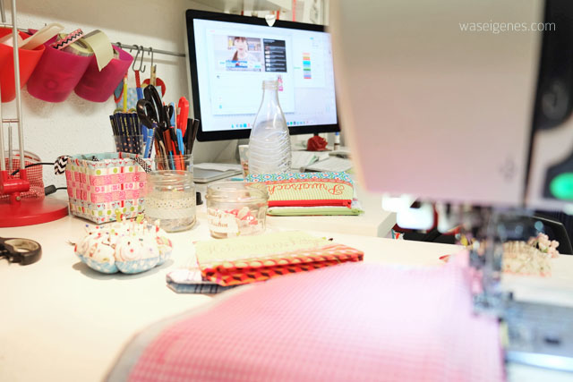 Im Kellerbüro setze ich mich an die Nähmaschine. Vorher werfe ich noch meinen aktuellen Lieblingskanal an: Cupcake Jemma. Ich könnte ihr stundenlang beim Torten und Cupcake backen und verzieren zugucken. Und ich mag ihren Akzent. Dabei nähe ich ein paar Täschchen.