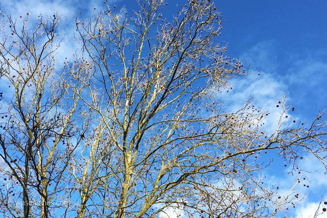 Es ist kalt. Also, so kalt wie normalerweise im März oder so. Dazu blauer Himmel. Schön!