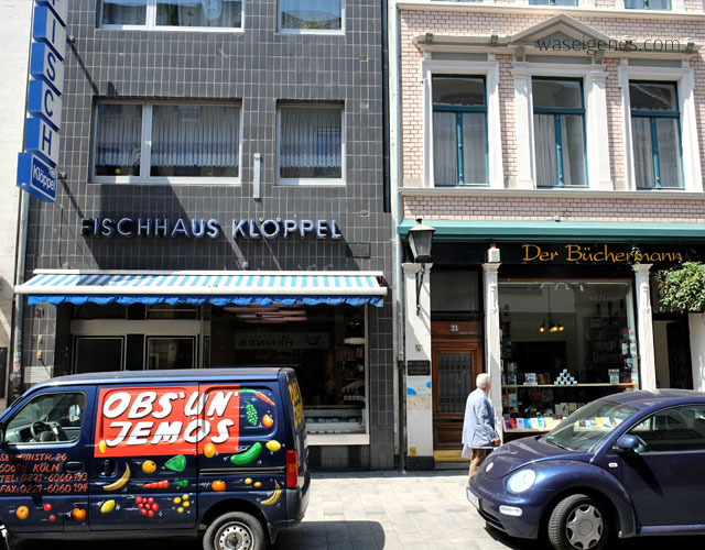 Letztes Jahr im Juni machte ich mich auf in die Südstadt, um dort die TapetenAgentur in der Jakobstrasse zu besuchen. Ich durfte dort Bilder für ein Hinter den Kulissen Posting machen. Im Anschluss hatte ich noch etwas Zeit, bevor die Kinder aus der Schule kommen sollten, also fuhr ich nicht sofort nach Hause, sondern bummelte noch etwas durch die Südstadt, genauer: durch das Vringsveedel, welches für seinen urtypischen kölschen Flair bekannt ist. Kartäuserstrasse und -wall, Severinstrasse, Hirschgäßchen… egal, einfach laufen, gucken, Atmosphäre schnuppern.