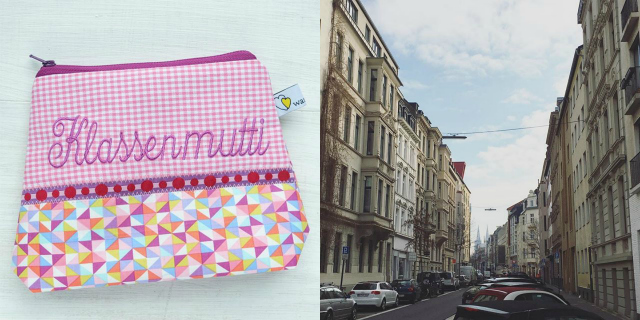 links Meine Gehschilehrerin war auch so eine Klassenmutti. An sie musste ich denken, als ich diesen Kundenwunsch genäht habe! rechts Die Spitzen des Kölner Doms im belgischen Viertel entdeckt.