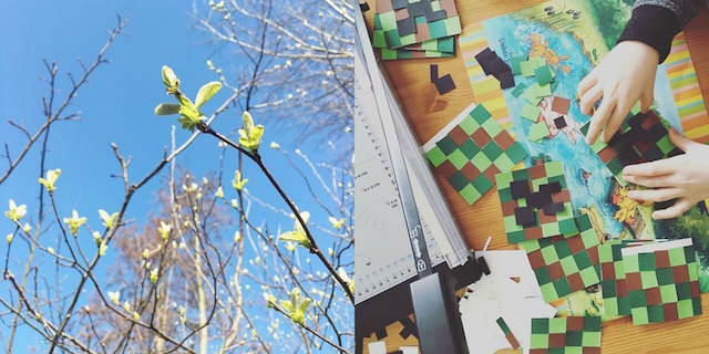 links Plopp! Der Frühling zieht ins Land! rechts Sonntagsbeschäftigung: Wir basteln Minecraft Einladungskarten und ich lerne, dass das Ding da Creeper heißt!