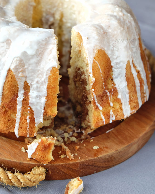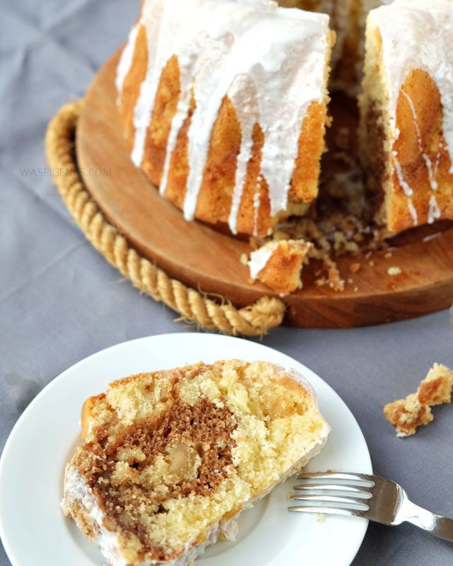 Ich frage mich ja immer, wie Foodies es schaffen, dass der schneeweiße Zuckerguss so schön am Kuchen runterläuft? Bei mir sieht es eher so hausfrauen-mäßig aus. ;-)