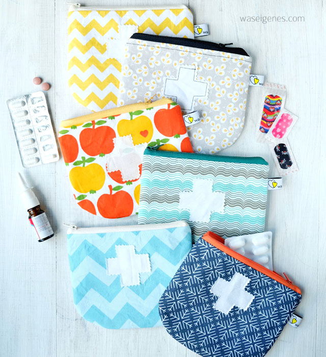 Es war im Winter 2009 als ich das erste Mal ein Notfalltäschchen für meine Handtasche nähte. Nein, nicht für die Handtasche. Meine Handtaschen lagen zu dieser Zeit alle im Keller, ich schleppte immer nur eine Wickeltasche mit mir rum. Ich wollte ein kleines Täschchen haben, in welches ich Pflaster, Osanit (ich habe neulich einen Tag lang gebraucht, bis mir der Name dieser Kügelchen wieder eingefallen ist), Arnika und andere Notfallhelfer verstauen konnte, die man als junge Mama eben so bei sich hat. Besser ist das.