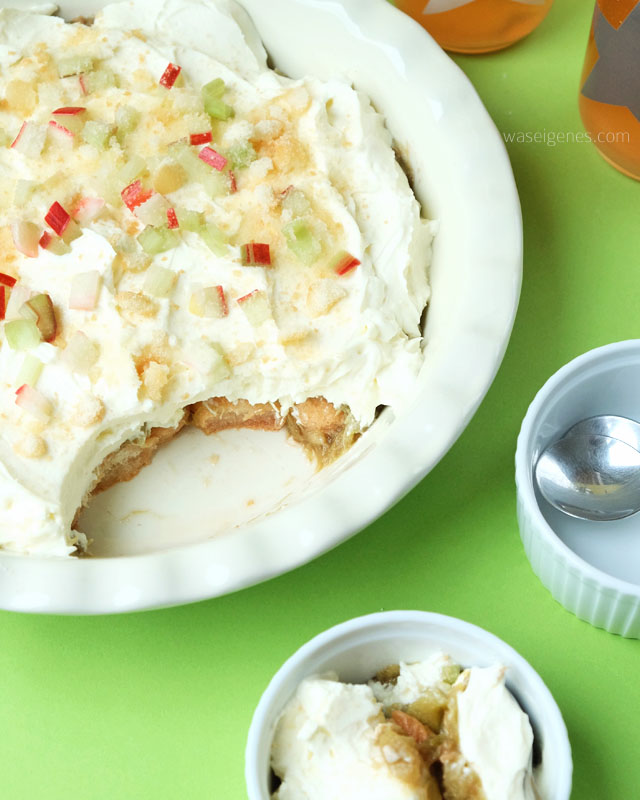 Schmeckt s u p e r. Saftig und ein bisschen sauer, aber auch cremig und süß. Rhabarber hat ja nur noch bis Ende Juni Saison… also, zack zack: Einkaufen!