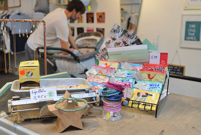 Hinter der Ladentheke stand Philipp. Auf seinem Arm sein 3-Monate-alter Sohn. Süßer Fratz. Als Ladenbesitzer fragt er mich natürlich, ob er mir helfen könne. Ladenbesitzer sollten immer ihre Hilfe anbieten. Nein, konnte er nicht, aber ich hätte da ein paar Fragen an ihn: Ist das Dein Laden? Warum heißt Dein Geschäft Fairfitters? Was genau verkaufst Du hier? Machst Du das alleine, seit wann gibt es Dein Geschäft und wie kam es dazu?