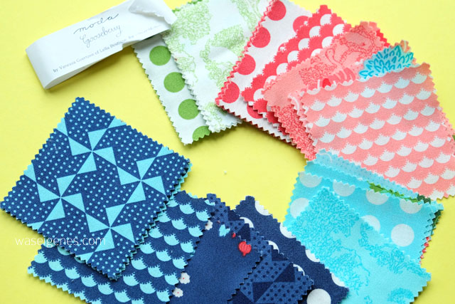 Beim Um- und Aufräumen neulich habe ich dieses Mini Charm Pack Stoffe gefunden. Das habe ich letztes Jahr bei Limetrees geshoppt. Seitdem lag es irgendwo unter einem Berg von… ach, lassen wir das. Sodom und Gomorra!
