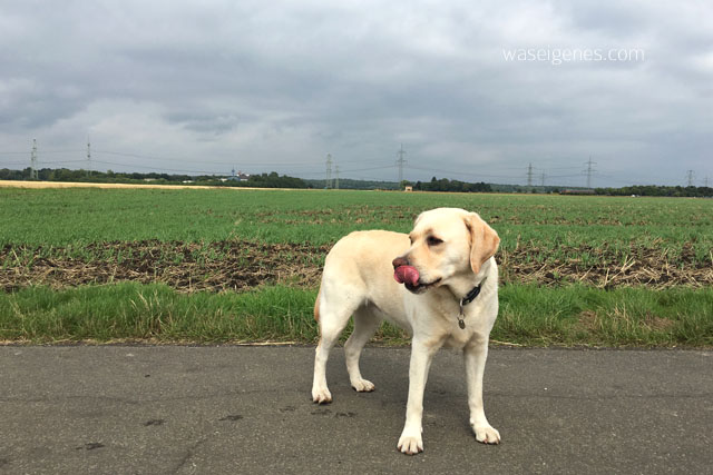 Danach bin ich eher unproduktiv und lustlos. Ich habe Kopf und Rücken. Deswegen schliesse ich mich dem Mann an. Zusammen geht’s diesmal mit Mollie durch die Felder. Ich sach’ Euch: erst ist es super windig und mir ist usselig…