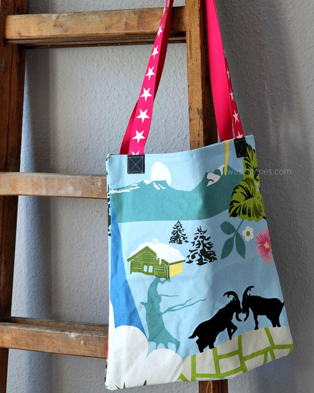 eine wunderschöne und kreative Idee. Ich bin dauernd auf der Suche nach schönen Stofftaschen – auch zum Verschenken. Vor allem der Stoff mit dem Alpen Style ist sehr genial.