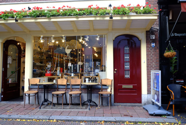 Wir bummelten durch die kleinen Sträßchen, gingen in verschiedene Läden, bewunderten das hübsche Delfter Blau-Geschirr, staunten über popelgrüne Entengrütze auf dem Wasser der Grachten.