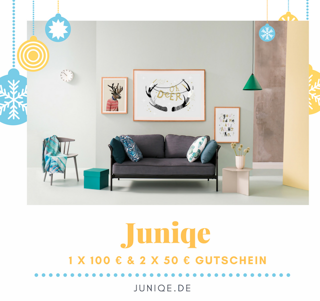 JUNIQE: Poster, Drucke, Wandbilder machen einen Raum so viel wohnlicher. Am liebsten mag ich ja Wortposter, also Bilder die mich mit einem Spruch zum Schmunzeln bringen. Oh Deer! Ist das nicht cool? Mit einem Gutschein von Juniqe (und heute gibt es drei Gutscheine für drei Gewinner) könnt Ihr Euch noch fix ein bisschen Weihnachten ins Wohnzimmer holen. Ihr könnt die Gutscheine aber auch für Bettwäsche oder Schreibwaren auf den Kopf hauen.