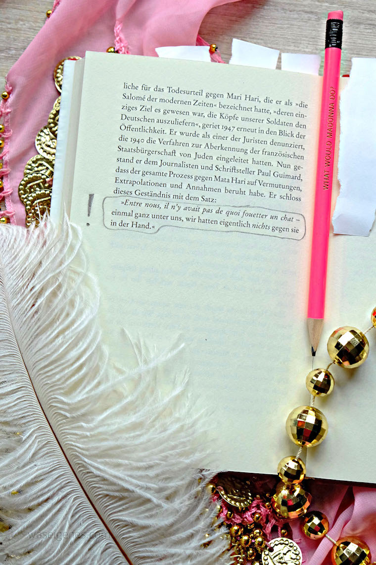 Nachdem ich die letzte Seite gelesen hatte, musste ich erstmal das Internet lesen. Es gibt unglaublich viele Geschichten rund um Mata Hari. Selbst um ihre Hinrichtung ranken sich zahlreiche Mythen und Anekdoten. So soll sie dem Erschießungskommando Küsse zugeworfen haben. Sie sei gar nicht gestorben und mit einem jungen französischen Offizier aus dem Gefängnis geflüchtet sein. Sicher ist, dass niemand nach ihrem Tod für die Beerdigung zahlen wollte und ihr Körper der medizinischen Fakultät der Sorbonne zur Verfügung gestellt wurde.
