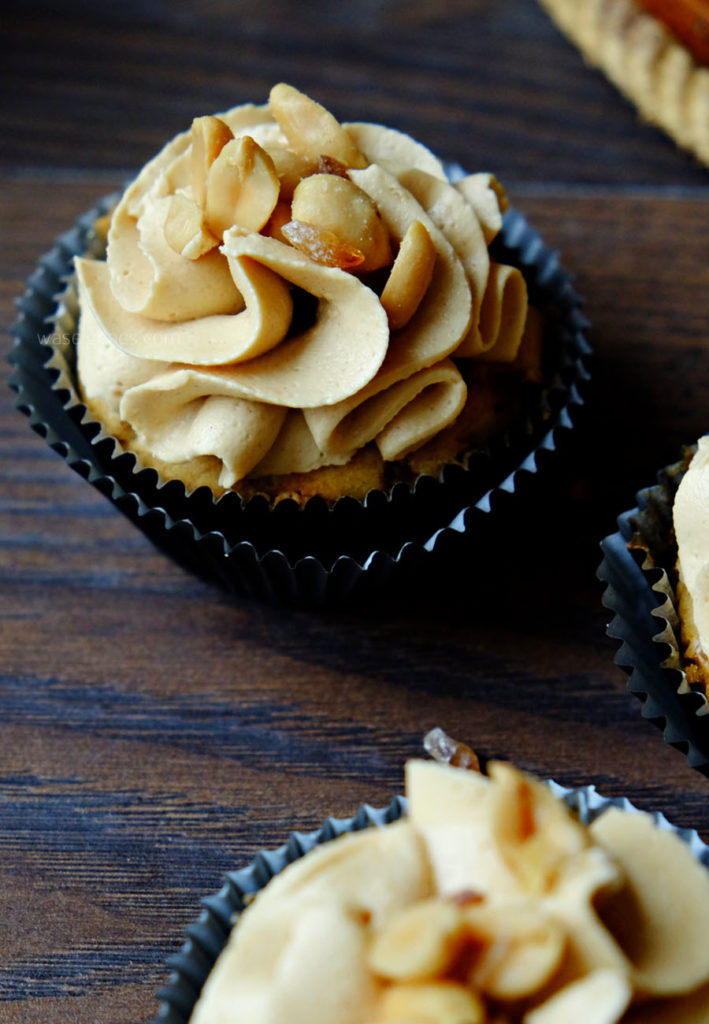 - Alle o.g. Zutaten mit dem Mixer oder der Küchenmaschine aufschlagen, bis eine schöne helle Masse entstanden ist. Diese in eine Spritztüte füllen und auf die abgekühlten Muffins spritzen. Gekrönt wurden meine Cupcakes noch mit ein paar Erdnüssen und ein wenig Grümmel Kandis.