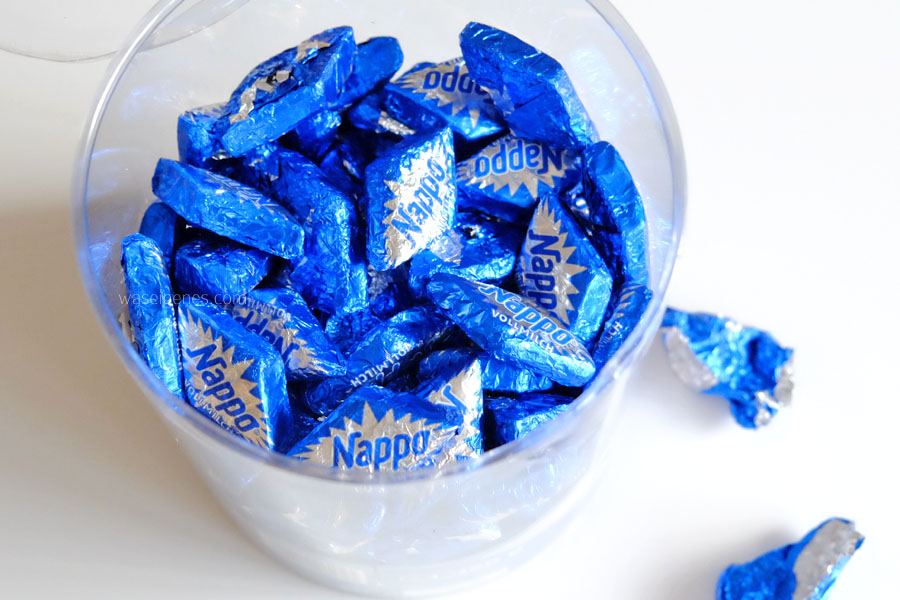 Die Nappos leisten mir auch noch Gesellschaft. In zwei Wochen sollen sie eigentlich in unserem Karnevalszug in die Mengen geschmissen werden, aber ich muss doch vorher probieren, ob man sie wirklich dem Volke überlassen kann. Das versteht Ihr, oder?