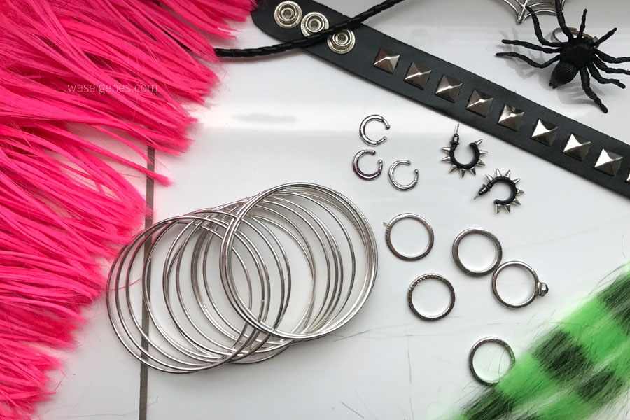 Im Bad liegen noch Teile unserer Verkleidung von Freitag. Wir waren ein lustige Horde Punks mit allem drum und dran. Ich habe sogar in Erwägung gezogen, mir ein Nasenpiercing stechen zu lassen. Meine Kinder waren entsetzt!