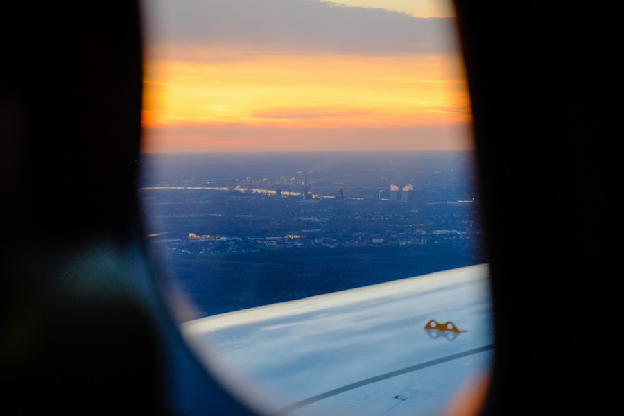 Und dann: Landeanflug auf Düsseldorf. Der Tag neigt sich dem Ende zu.