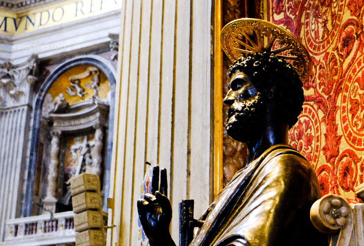 Im Dom selbst kann man einen Audio Guide leihen, man kann aber auch nach einem W-Lan-Passwort fragen und wenn man eigene Kopfhörer dabei hat (hatte ich zum Glück!), dann kann man mit dem eigenen Handy und den Kopfhörern durch den Petersdom von einer Sehenswürdigkeit zu nächsten laufen. Der Audio Guide war toll, kurz und knackig, so wie ich das mag.