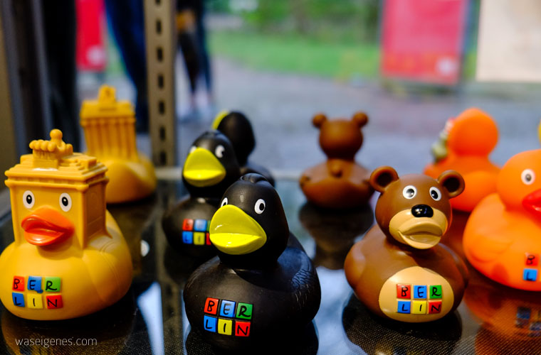 Als wir rauß kamen, schüttete es immer noch wie aus Eimern. Also erstmal in den Souvenir Shop. Berlin Enten für die Sammlung kaufen.