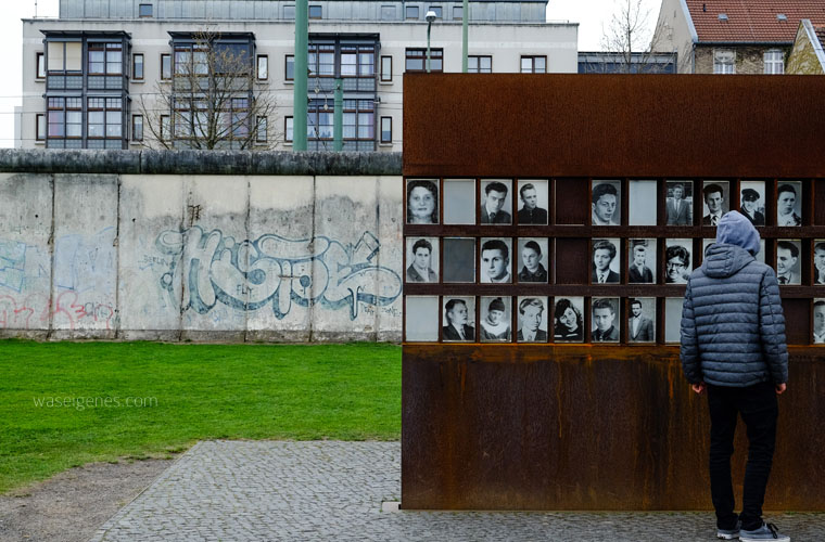 Danach liefen wir die Oranienburger Straße hoch und stiegen wieder in den Hop on- Hop off Bus. Erster Stop: die Mauer Gedenkstätte an der Bernauer Strasse.