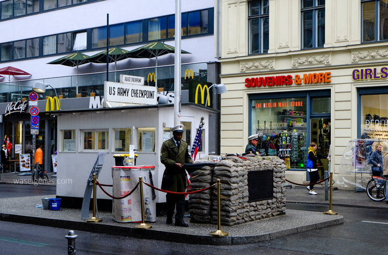 Von dort liefen wir die Friedrichstrasse hoch zum Check Point Charlie. Und dort fing es wieder an zu regnen. So schade… Regenschirme hatten wir uns schon im Dienstag gekauft, deswegen wurden wir nicht all zu naß.