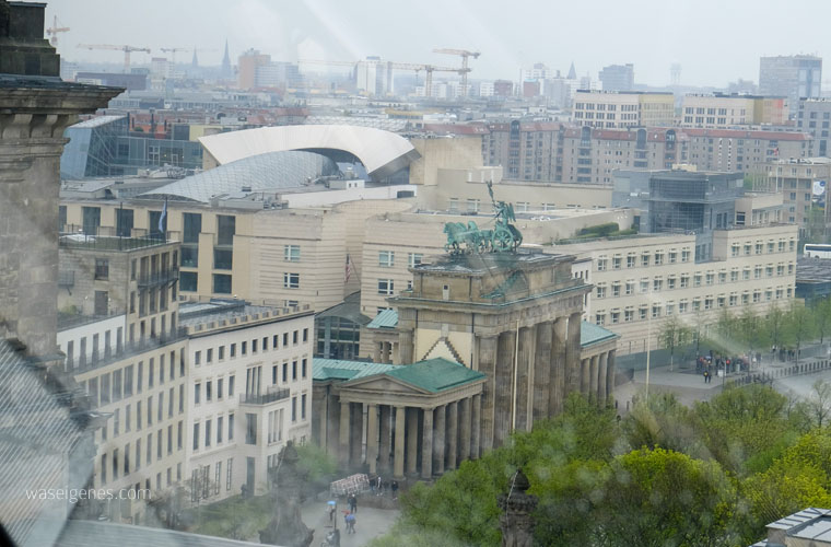 Als nächstes ging’s zum Reichstag. Ich hatte uns einige Wochen zuvor schon angemeldet. Als ich das letzte Mal in die Kuppel wollte, stand ich noch stundenlange auf der Treppe an. Heute muss man durch die Sicherheitskontrolle in Containern vor dem Reichstag. Nicht schön, aber sehr viel organisierter und schneller, als damals.
