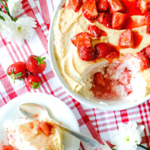 Milchreisauflauf mit Erdbeeren und Baiserhaube