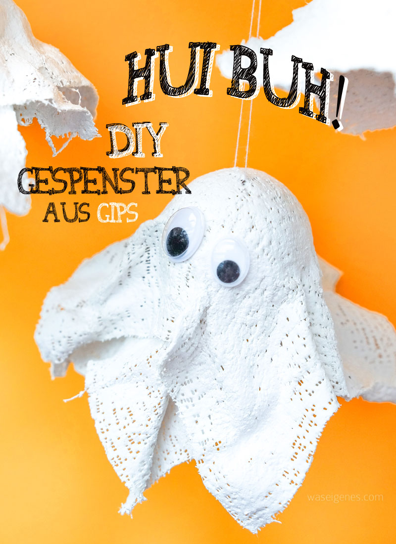 Nun denn, hier ist das Pinterest Bild und dort seht Ihr die wenigen Schritte, um diese DIY Gespenster aus Gips zu basteln.