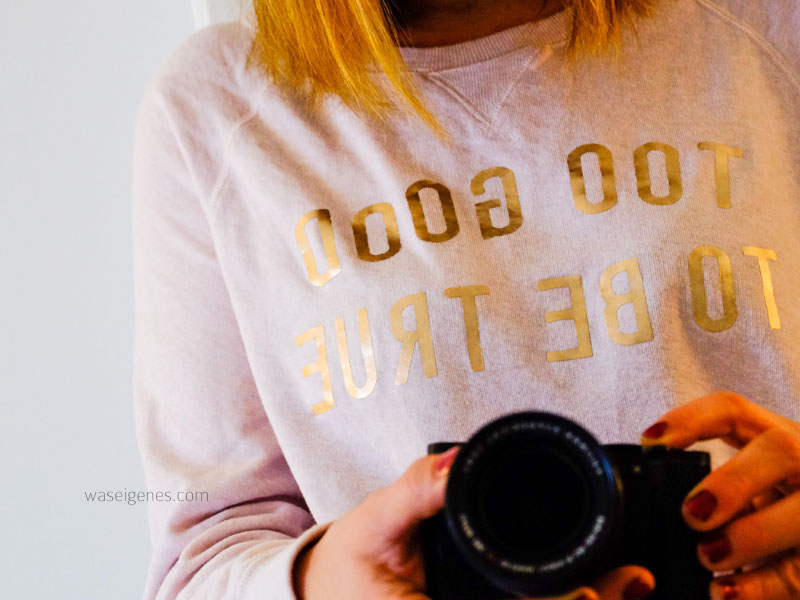 Ich bin heute übrigens “too good to be true”! Und jedes Mal wenn ich das Sweatshirt trage denke ich, könnteste’ ja auch eigentlich selber machen. Nähmaschine und Plotter stehen theoretisch bereit.