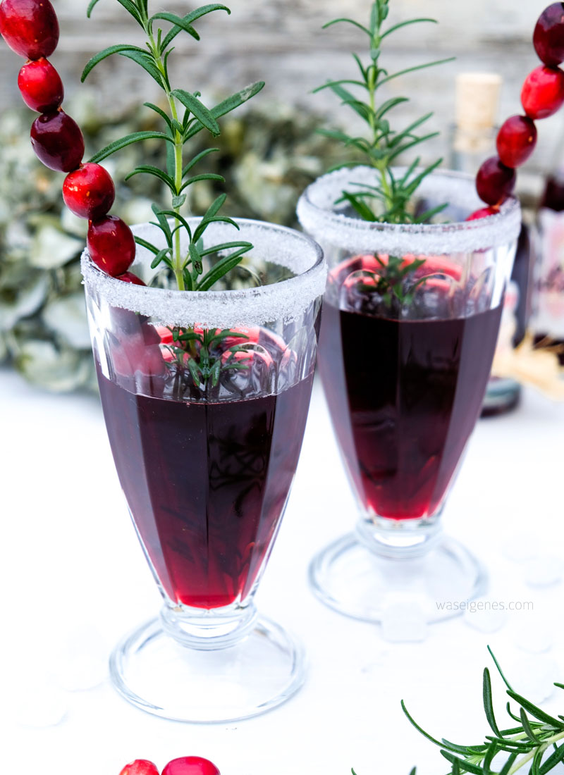 Streng genommen sind diese Gläser für ein Likörchen natürlich viel zu groß, aber die Optik der roten Flüssigkeit, des Grünzeugs, der aufgespießten Cranberrys und des Zuckerrand sprachen mich so sehr an, dass ich meinen Likör einfach so fotografieren musste. Stellt Euch einfach vor, ich hätte den Heiße Liebe Likör mit Tonic aufgegossen. Wir wollen schliesslich nicht übertreiben.