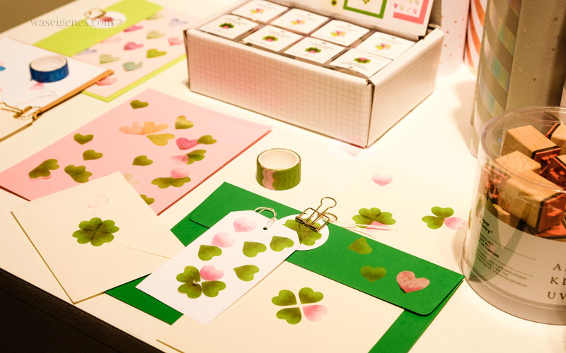 Neu und besonders cool von Rico Design: Washi Tape in Form von kleinen Blättern. Die kann man einzeln von der Rolle abziehen und daraus z.B. Kleeblätter kleben.