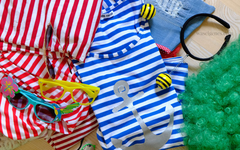 Und dann im Schlafzimmer schonmal diversen Verkleidungskram zusammensuchen und -legen. Samstag waren wir in der Lachenden Kölnarena mit gaaanz vielen anderen Matrosen, Seemännern und Kapitänen. Dafür habe ich mir mein Matrosenshirt mit einem Anker beplottet. Den gibt’s als Freebie bei Happy Fabric- falls jemand Bedarf hat.