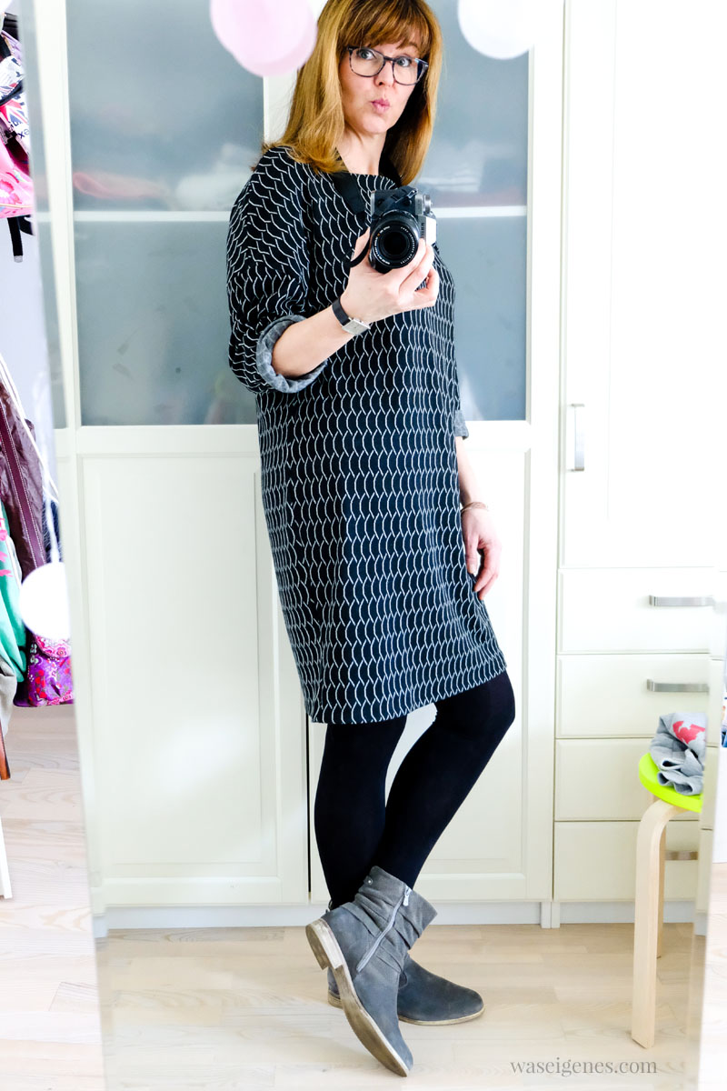 Heute zeige ich Euch ein selbst genähtes Kleid! Wohooo! Ein Kleid! Ich trage selten bis überhaupt nie Kleider, aber als ich letzten Herbst in Dänemark bei Stoff & Stil war, kam ich maximal inspiriert und motiviert nach Hause und wollte unbedingt dieses Kleid nähen.