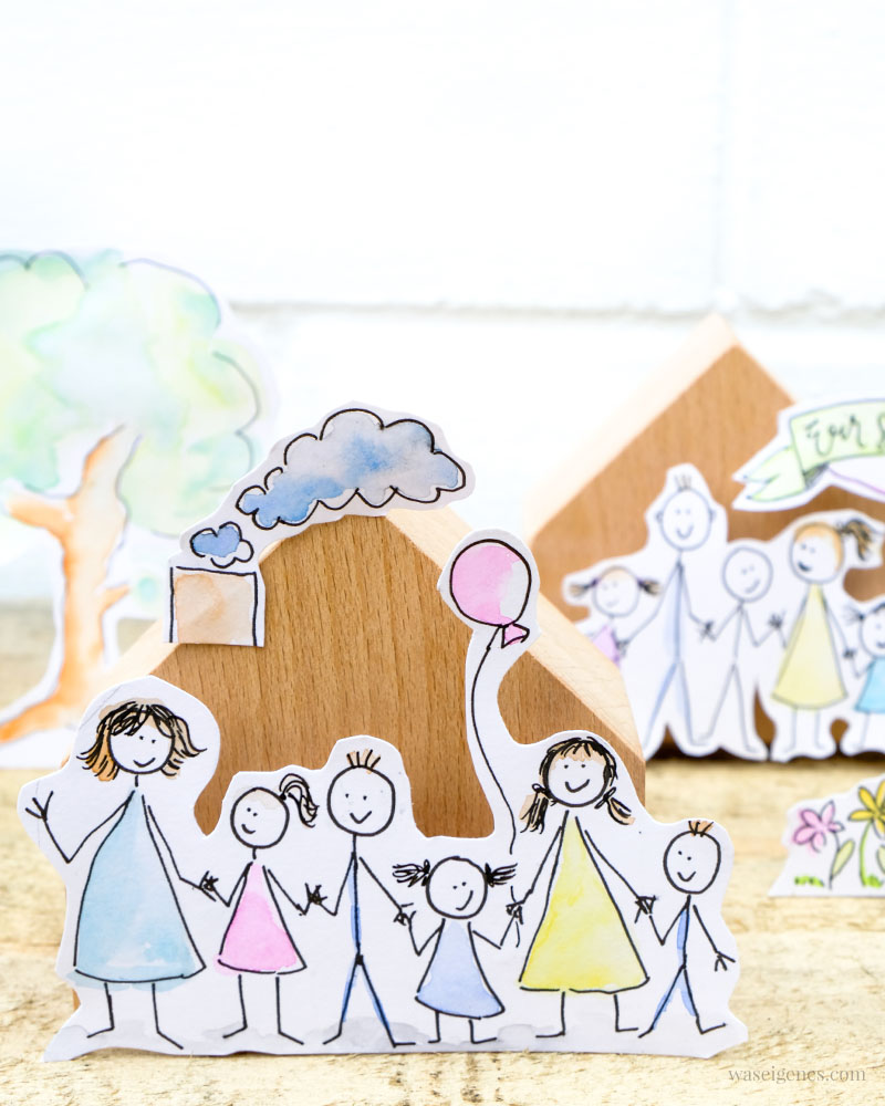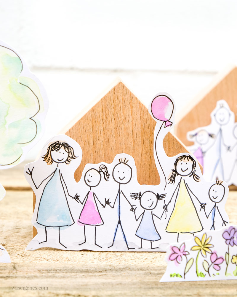 #weiljedereineFamiliebraucht lautet die heutige Aktion von SOS-Kinderdorf! Für diese Aktion habe ich mir nicht nur Gedanken zum Thema Familie gemacht, sondern auch diese zwei Holzhäuschen aufgehübscht. Erst wollte ich sie bemalen, aber dann hatte ich die Idee der Kinder mit ihrer Dorfmama, bzw. ihrem Dorfpapa. Gemalt habe ich sie mit einem Fineliner und Aquarellfarben.