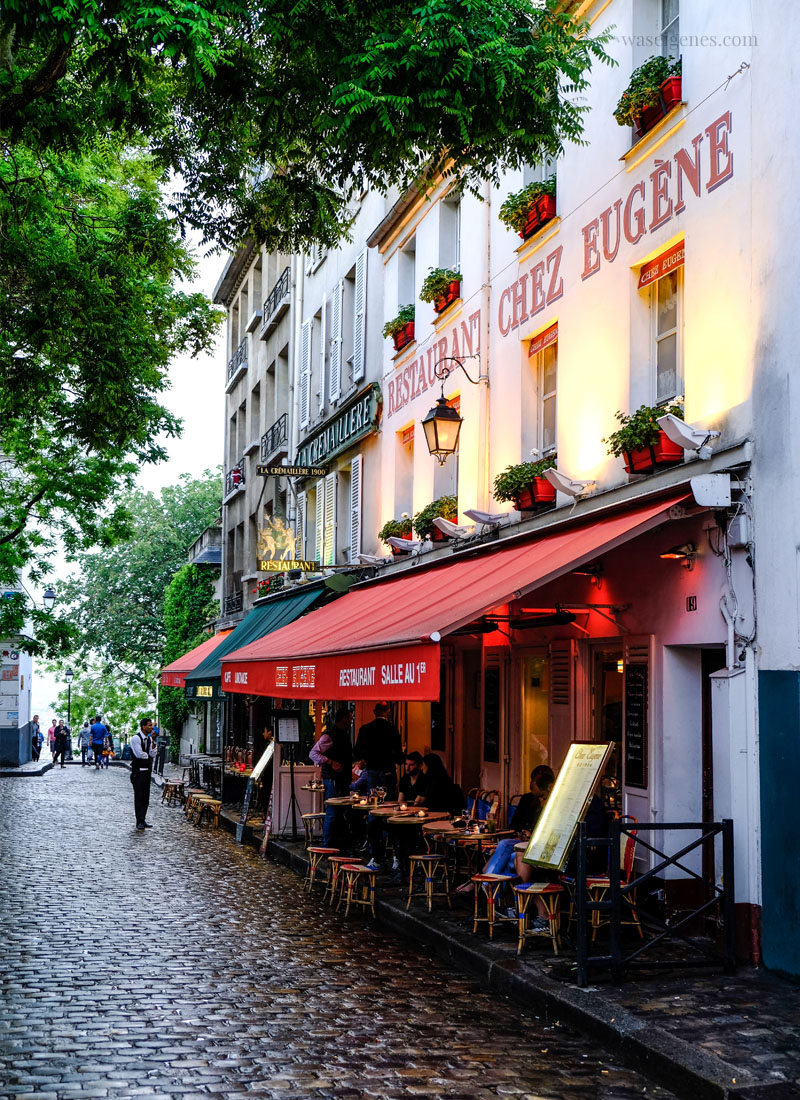 Was man unbedingt wissen sollte, wenn man ein Hotel auf oder in Montmartre bucht: es geht immer rauf und auch mal runter, auf jeden Fall heißt es Treppen steigen, Treppen steigen, Treppen steigen. Die längste Treppe, die wir erklommen haben, hat 113 Stufen. Wir haben sie alle gezählt. Und die Kinder sind sie teilweise zweimal rauf und runter gejoggt, werden der Mann und ich keuchend Stufe für Stufe hinterher schlichen.