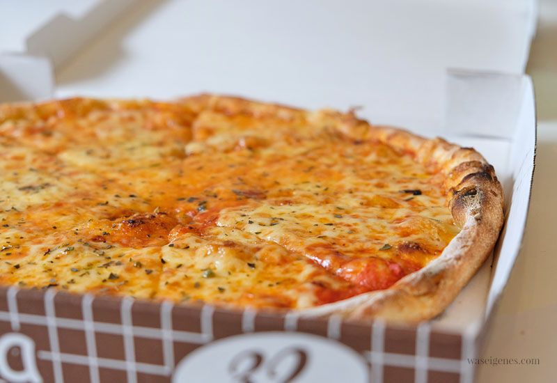 Und die bestellte Pizza kommt auch pünktlich. Wunderbar, wir haben nämlich Kohldampf.