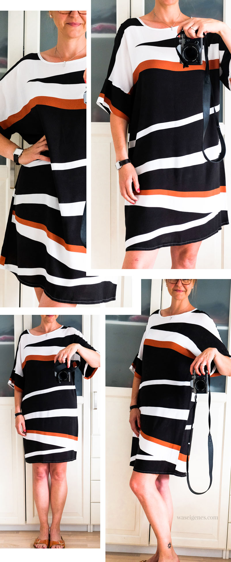Gefällt es mir ? Ja, ich bin zufrieden. Zwei Zentimeterchen länger hätte es sein können und ein klitzekleines bisschen schmaler. Aber ansonsten sitzt es schön luftig und ist demnach perfekt, um mit mir in den Sommerurlaub zu fliegen. Den Stoff finde ich wirklich grandios und als ich unter der Kellertreppe auch noch meine orangefarbenen Birkenstock gefunden habe (die ich über den Winter komplett vergessen hatte), habe ich mich gefreut, wie ein kleines Kind. Passt eins A.