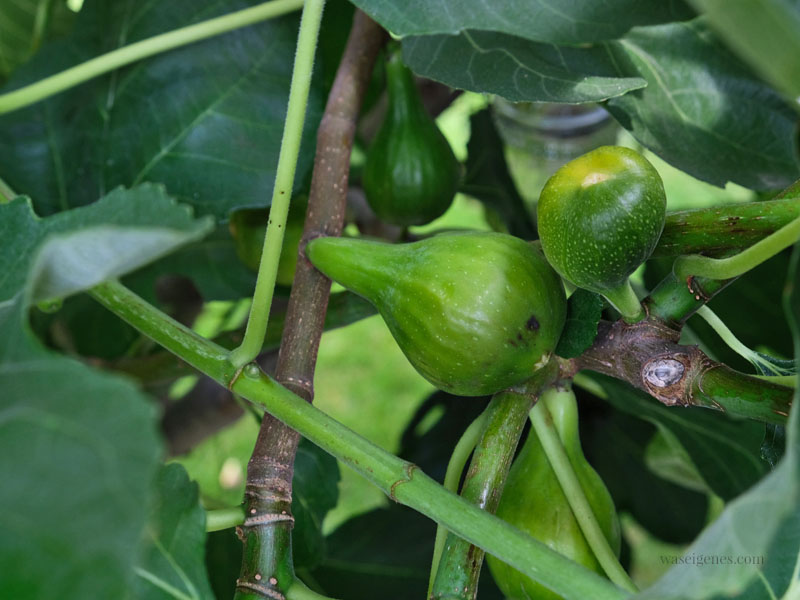 Zu Hause inspiziere ich den Feigenbaum nach reifen Früchten. Zwei Feigen habe ich schon verputzt, auf den Rest muss ich noch ein bisschen warten.