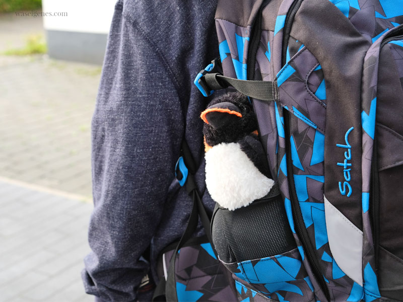 Seit dem Ausflug in den Zoo, darf der dort gekaufte Pinguin jeden Tag mit in die Schule. Machen alle so, Mama.
