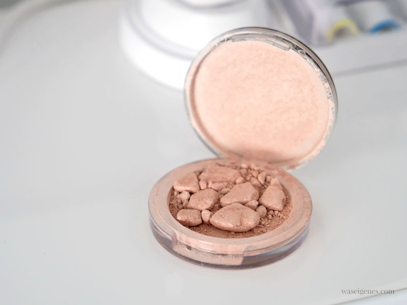Kennt Ihr das? Lidschatten fällt runter und sieht dann so aus. In irgendeiner Insta Story habe ich mal gelernt, dass man das Puder etwas anfeuchten und dann ins Gefrierfach stellen soll. Habe ich gemacht und hat funktioniert, es ist wieder fest. Ich meine jedoch, dass man das Gefrierfach weg lassen kann, wenn man das Puder mit einem feuchten Löffel festdrückt.